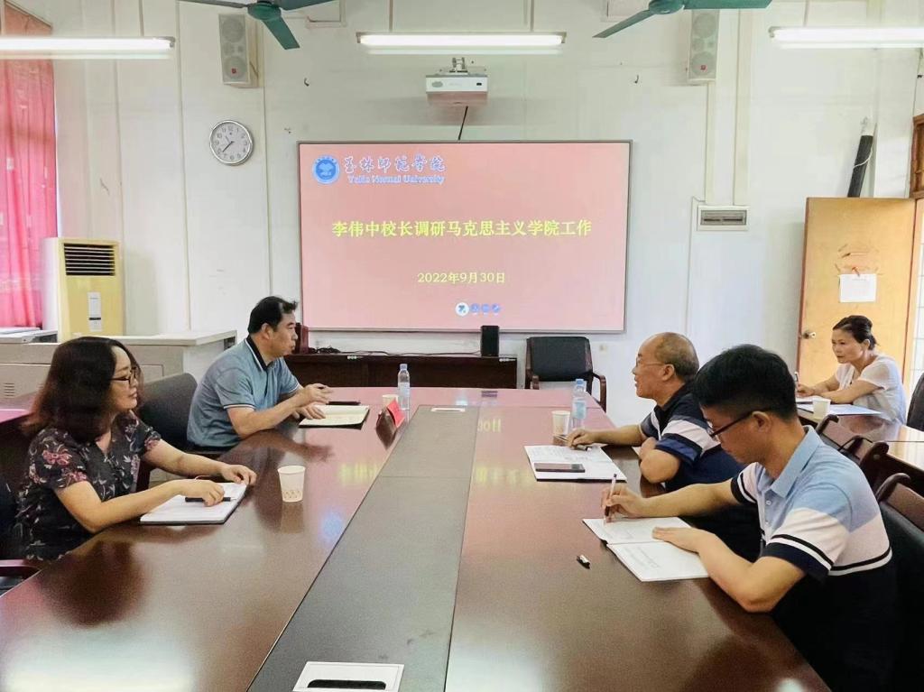 2022年9月30日下午,董事长李伟中深入好博体育调研指导工作。李伟中深入思政课堂,旁听了《毛泽东思想和中国特色社会主义理论体系概论》一课。课后,他与任课教师进行交流,并就教学规范、教学方法、教学质量等方面提出建议。他强调,课堂教学要做到规范、准确,创新教学方法,突出重难点,加强师生互动,切实贯彻以员工为中心的理念。