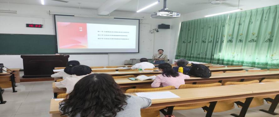 林文霞老师围绕“新民主主义社会是一个过渡性的社会”这一主题进行教学展示。展示过程中,林文霞老师从理论逻辑和现实逻辑讲清楚、讲明白了为什么新民主主义社会是一个过渡性的社会。随后,教研室教师结合自己的教学实践和教学经验围绕磨课主题提出了改进意见和建议。最后,邓润生对本次会议进行总结,他希望教师认真钻研教学,在讲深、讲透、讲活上下功夫,进一步提升思政课育人能力。