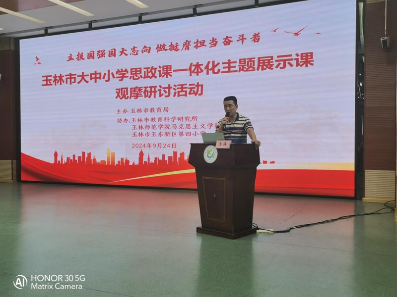 9月24日,由玉林市教育局举办的玉林市大中小学思政课一体化展示课观摩研讨活动在玉东新区第四小学举行。